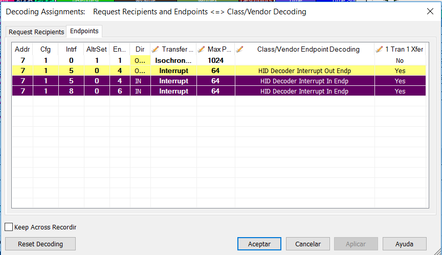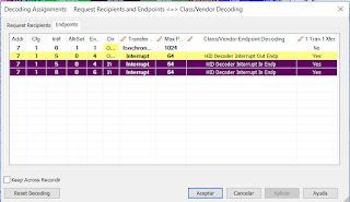 A problem that i find with this tool is that sometimes it can't put the right type of endponint , class and packet size , so check it with usb descriptors first.(Some weird sometimes identify some endpoint with bulk type when they are interrupt type check with usb descriptor that info is correct)